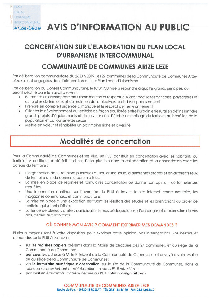 vousetesici Accueil Procédure d’élaboration du PLUI ARIZE LEZE AVIS CONCERTATION PUBLIQUE