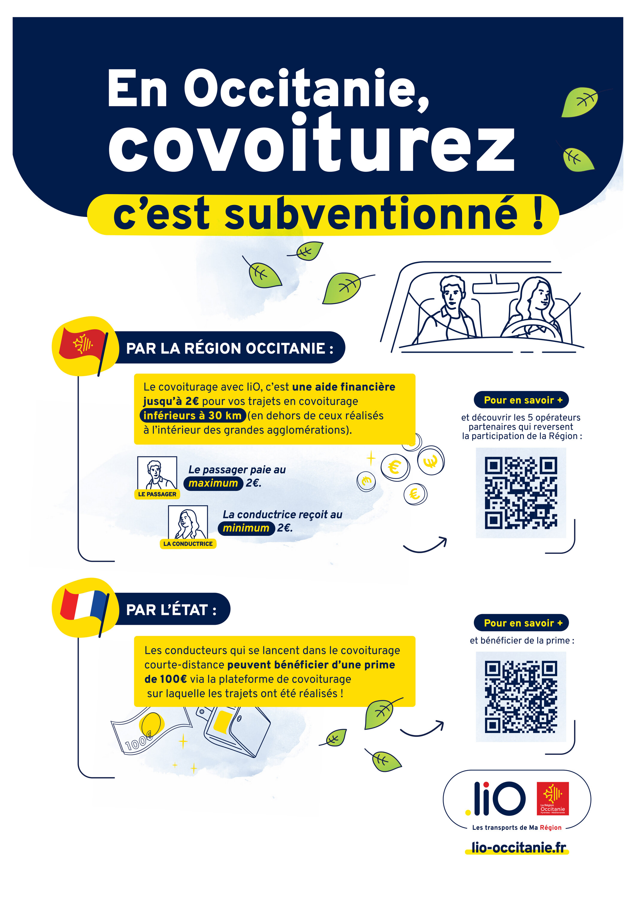Aide financière de la Région pour le covoiturage de courte distance (distance inférieure à 30 kilomètres)